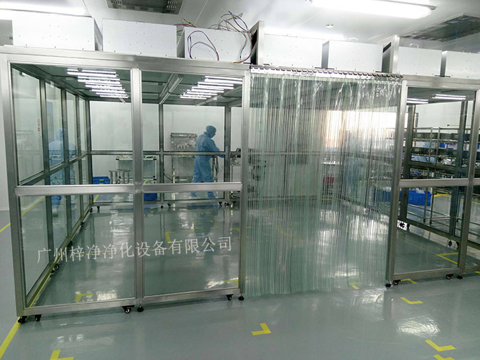 潔凈棚它主要從FFU頂部將空氣吸入,經(jīng)初效過(guò)濾器,高效過(guò)濾器過(guò)濾,過(guò)濾后的潔凈空氣在整個(gè)出風(fēng)面以0.45m/s±20%的風(fēng)速勻速送出到潔凈棚內(nèi)。形成均流層,使?jié)崈艨諝鈿饬鞒蚀怪眴蜗蛄?,從而保證了工作區(qū)內(nèi)所要求的潔凈度。潔凈棚等級(jí)通常分為百級(jí)潔凈棚,千級(jí)潔凈棚,萬(wàn)級(jí)潔凈棚。