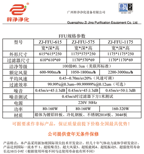 梓凈風(fēng)機過濾單元FFU標準尺寸規(guī)格