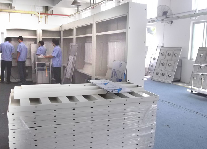 FFU、風淋室、貨淋室、傳遞窗、高效送風口、潔凈棚、潔凈采樣車等產(chǎn)品鈑金加工車間